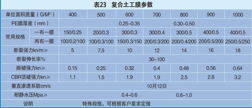 復(fù)合土工膜分為一-布一膜和兩布一寬幅4 6m重量為200 1500/m2,復(fù)臺(tái)土工膜能滿足水利、市政建筑,交通地鐵、隧道等工程建設(shè)中的防章隔離補(bǔ)強(qiáng),防梨加固等土木工程需要。由于其選用離分子材料目生產(chǎn)工藝中添加了防老化劑,固可在非常規(guī)溫度環(huán)境中使用,常用于堤壩,排水溝渠的防滲處理以及發(fā)料廠的防污處理。